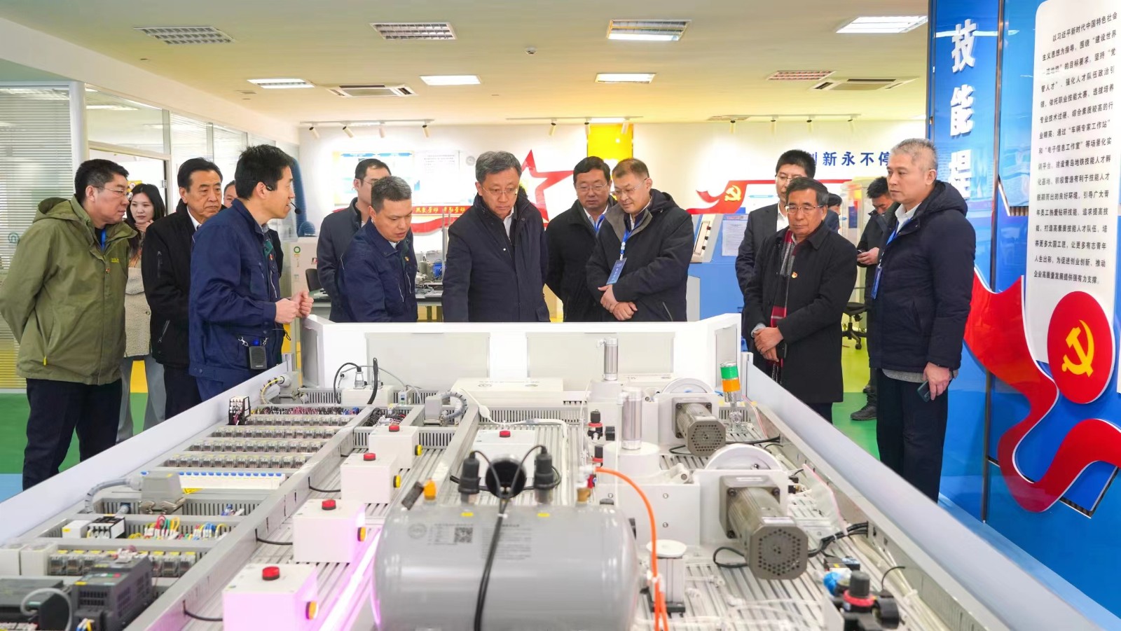 活動中,與會者參觀了位于原國棉六廠老廠區(qū)的TOD展廳,聽取了我市TOD發(fā)展規(guī)劃介紹,了解到這座曾經(jīng)孕育了全國聞名的“郝建秀工作法”的老廠區(qū)即將煥發(fā)新生機(jī);參觀了在建的青島地鐵5號線環(huán)灣大道站施工現(xiàn)場,了解他們以班組建設(shè)引領(lǐng)提升生產(chǎn)效率方面的成績;參觀了青島地鐵線網(wǎng)運(yùn)營管理與指揮中心,實(shí)地感受中心在實(shí)現(xiàn)城市線網(wǎng)運(yùn)營指揮一體化、資源集約化、信息共享、應(yīng)急處置、線網(wǎng)協(xié)調(diào)統(tǒng)一運(yùn)作上發(fā)揮的重要作用;參觀了尹星職工創(chuàng)新工作室,聽取全國勞動模范尹星率領(lǐng)技術(shù)團(tuán)隊(duì)突破技術(shù)壁壘,填補(bǔ)國內(nèi)空白等方面的先進(jìn)事跡。